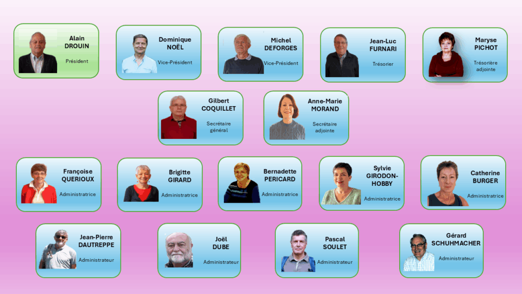 Le Conseil d’Administration a pour mission de gérer et de coordonner toutes les actions et activités de l’Association.