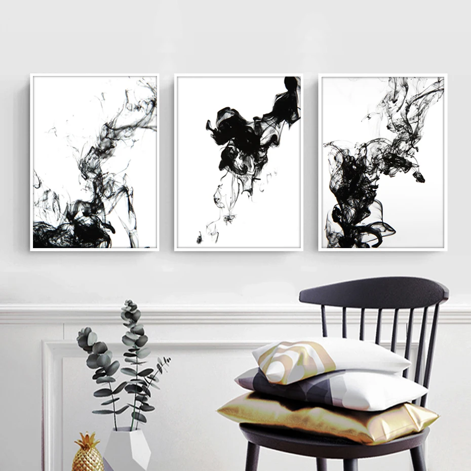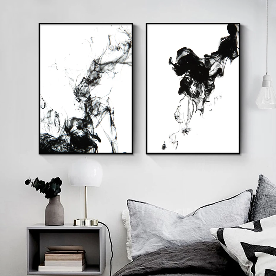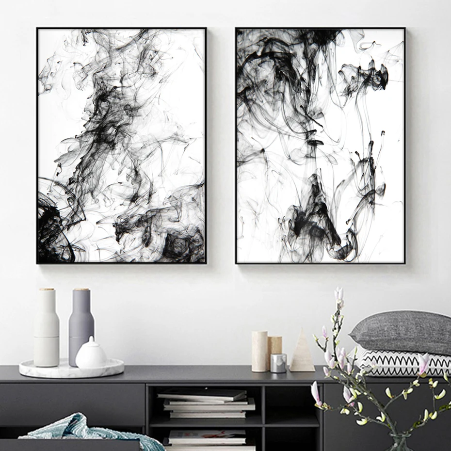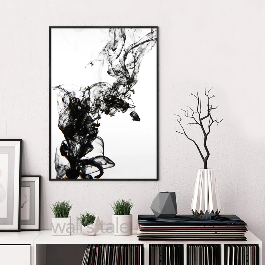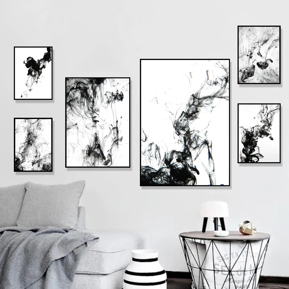 Minimalist Abstract Black White Dynamic Ink Canvas Paintings Poster Print Nordic Wall Art Picture Living Room Home Office Decor