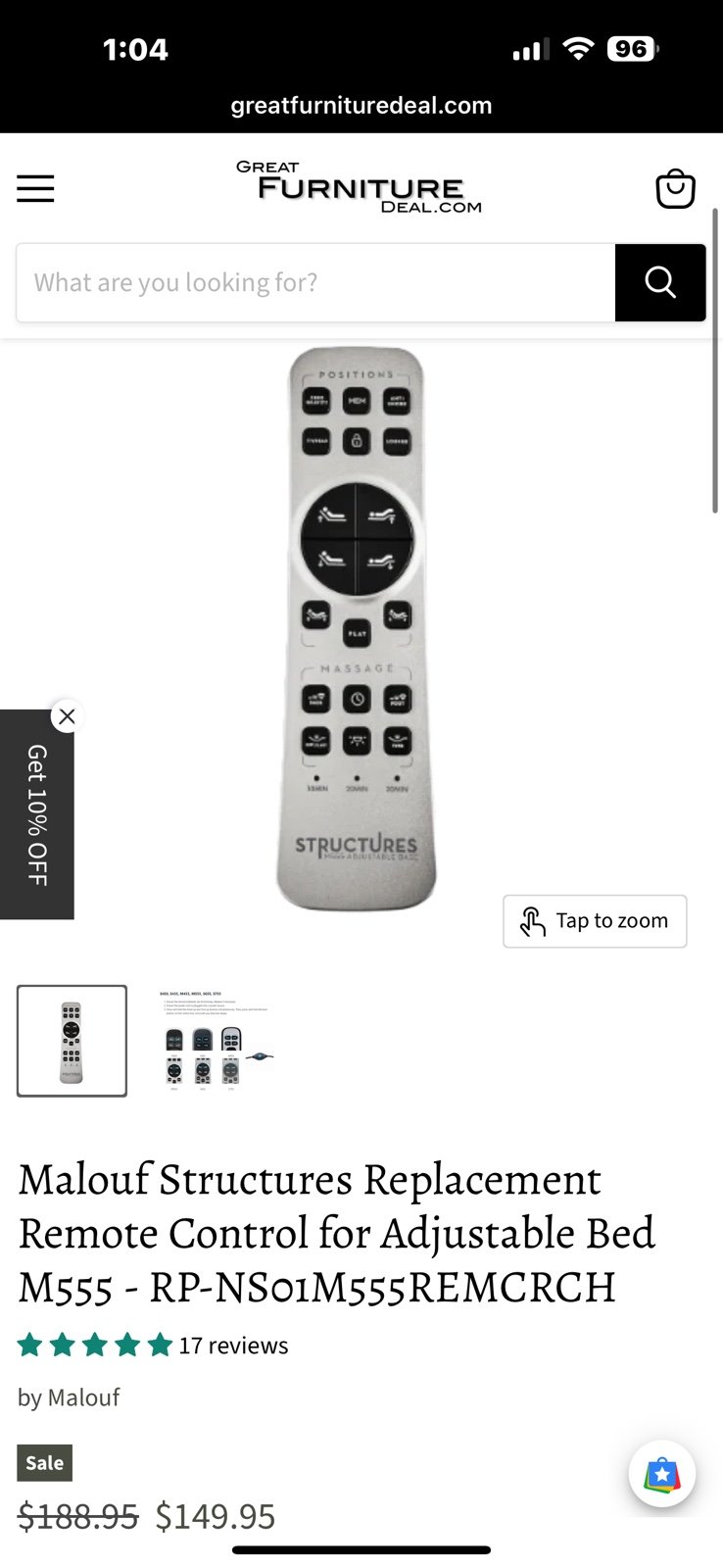 Malouf Structures M555 Adjustable Bed Replacement Remote - RP-NS01M555REMCRCH